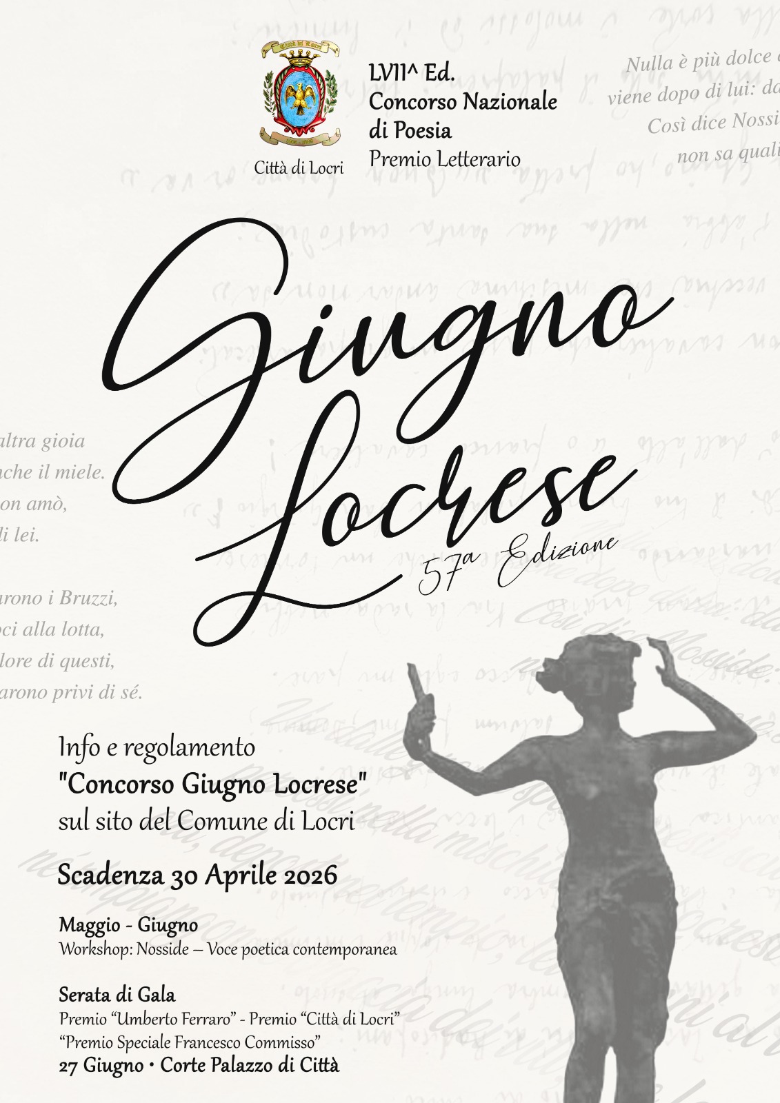 LVII^ edizione del Concorso nazionale di poesia e premio letterario “Giugno Locrese”. Regolamenti di partecipazione